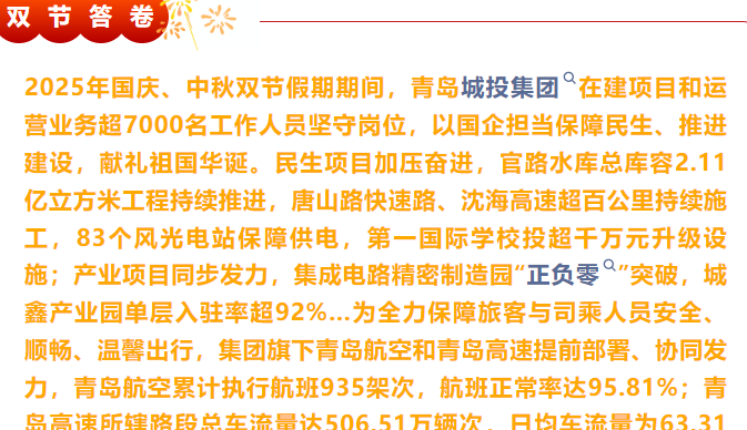 935架次,506萬輛次,7000余人在崗……青島城投雙節(jié)答卷來了!
